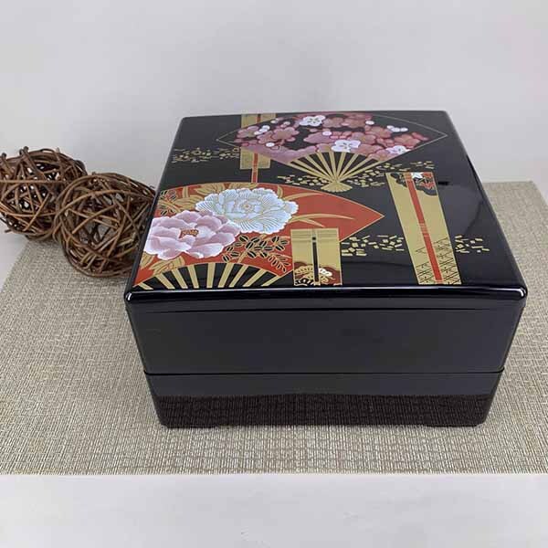 日本漆器6.5吋雙層果盒 扇牡丹